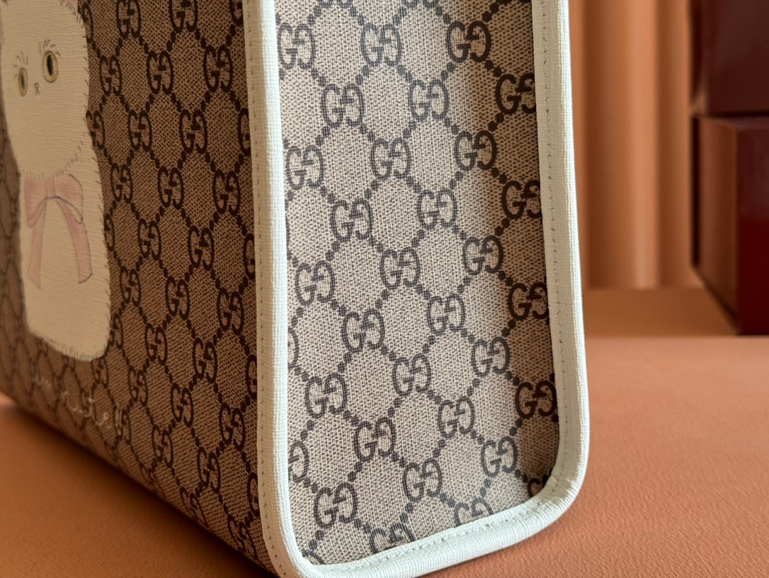 Gucci Cat Print Tote Bag White Beige Canvas 231241