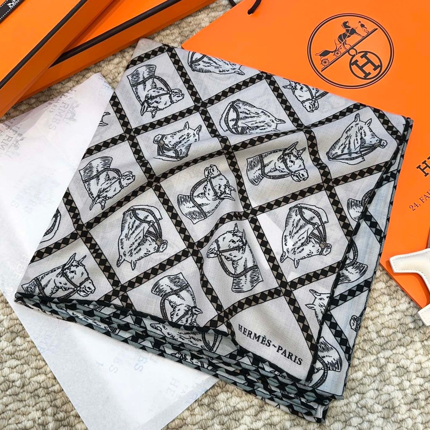 SCARF 135 CM BLACK MIX WHITE 393118
