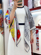 Square Scarf 140CM In Grey White Colorful Cashmere And Silk