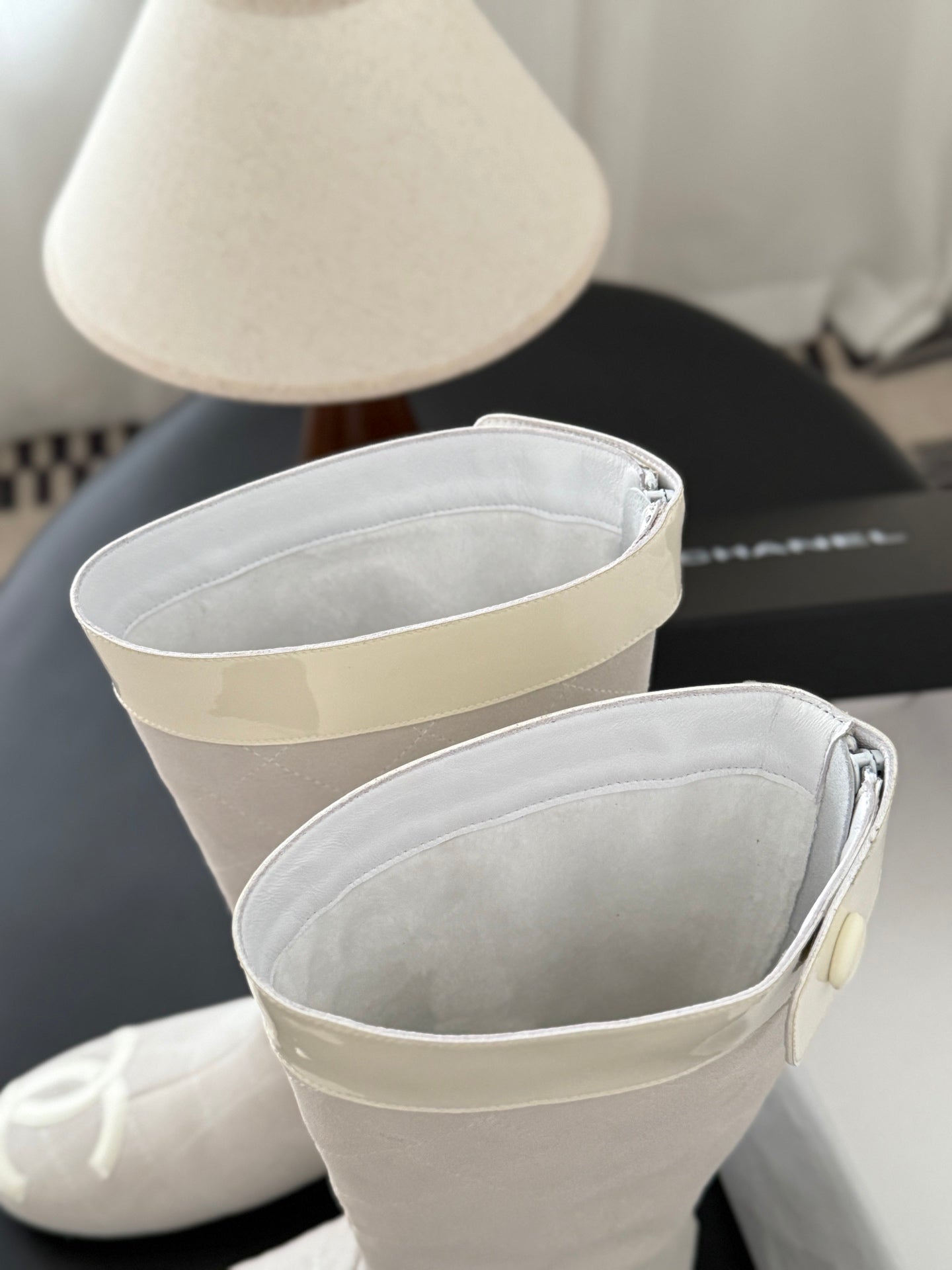 CC 2025 Vintage Cambon Mid-Calf Boots White Suede Patent Leather 550639