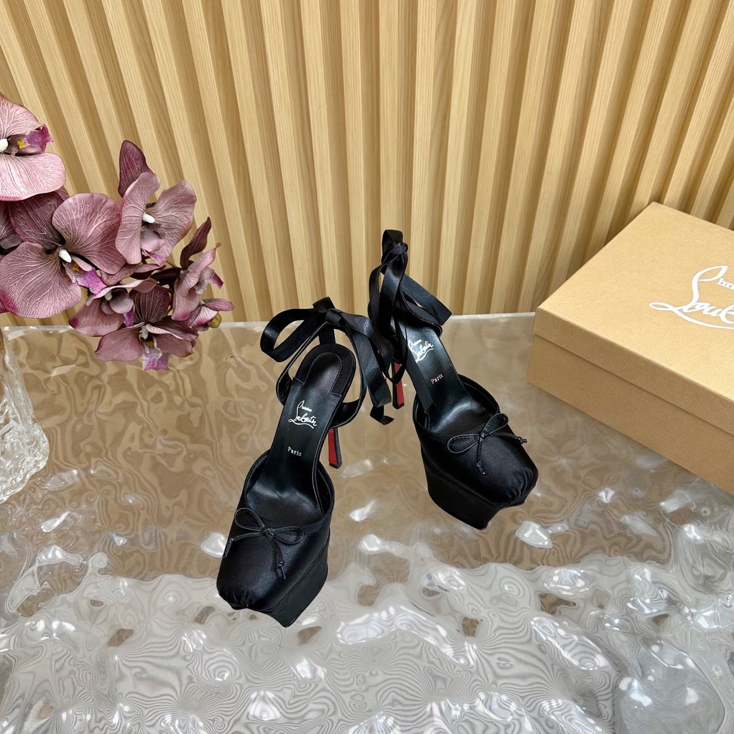 CL 25C Cassia Lace Up Alta 160mm Black Silk 221616