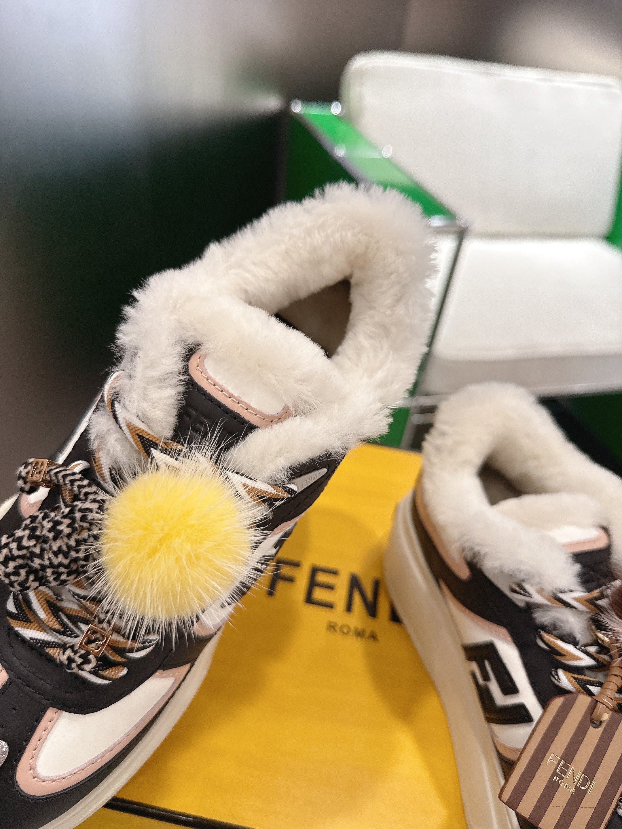 Fendi 2025 Match Platform Sneakers Black Leather Wool 562578