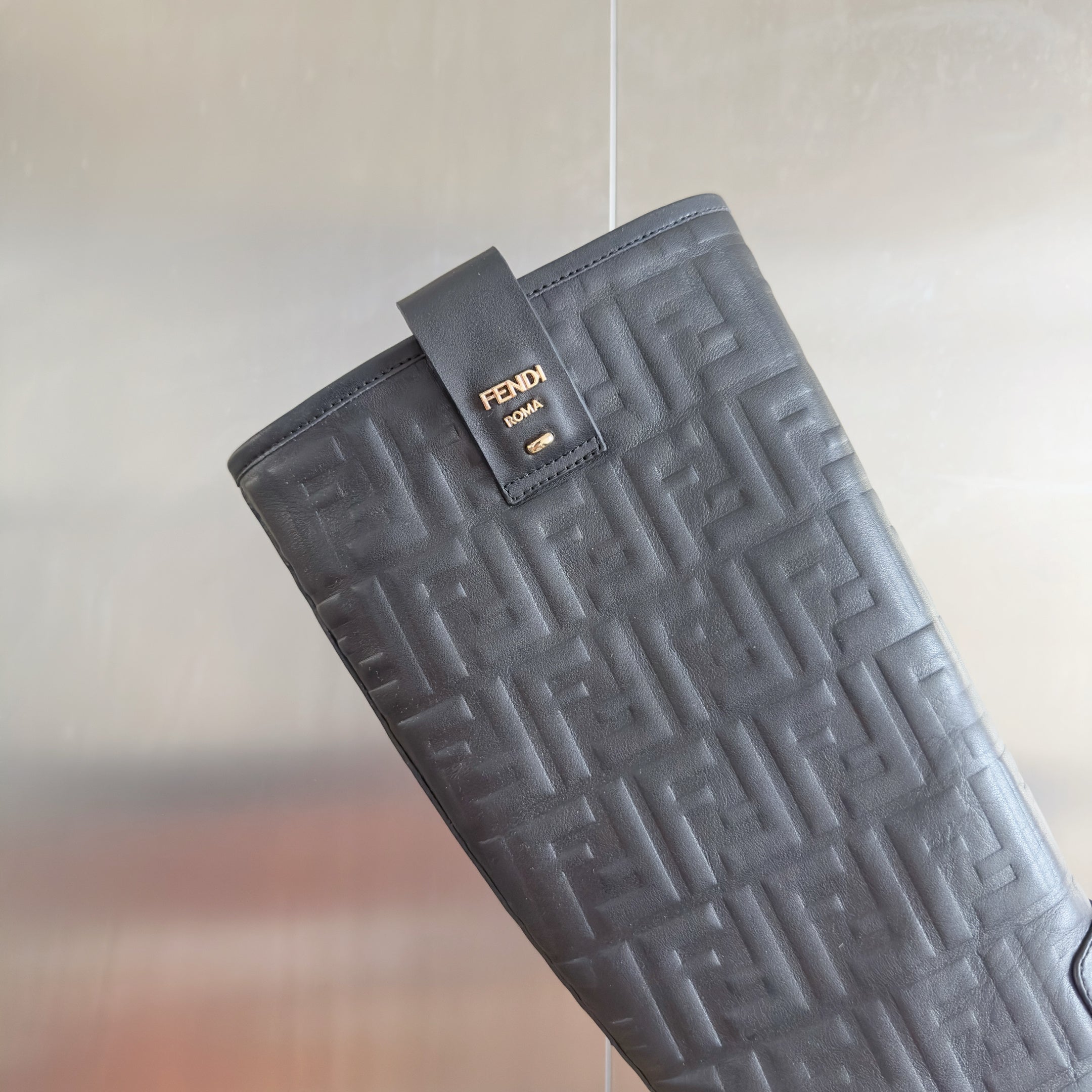 Fendi 2025 Monogram Embossed Long Boot Black Sheepskin 553110