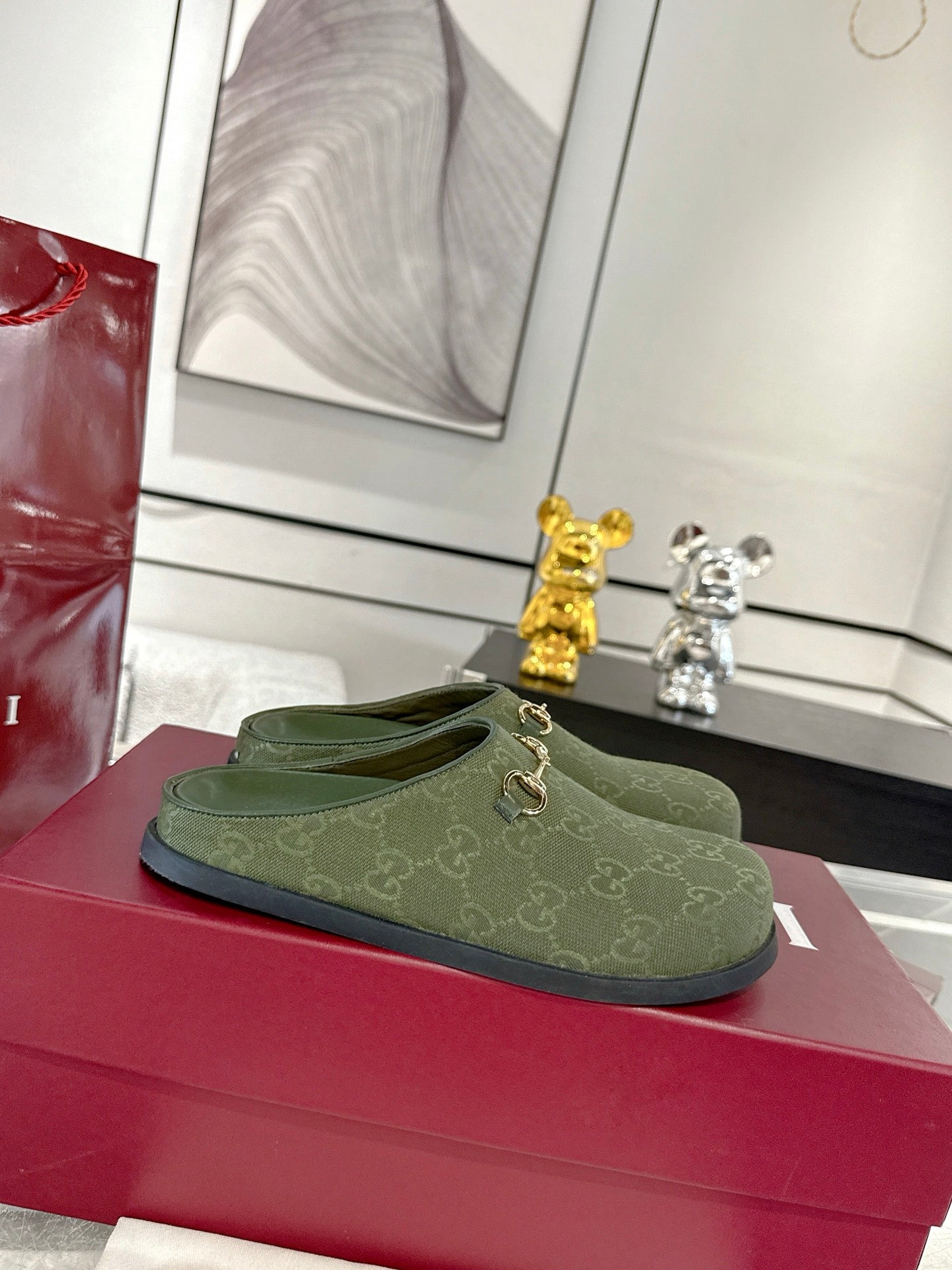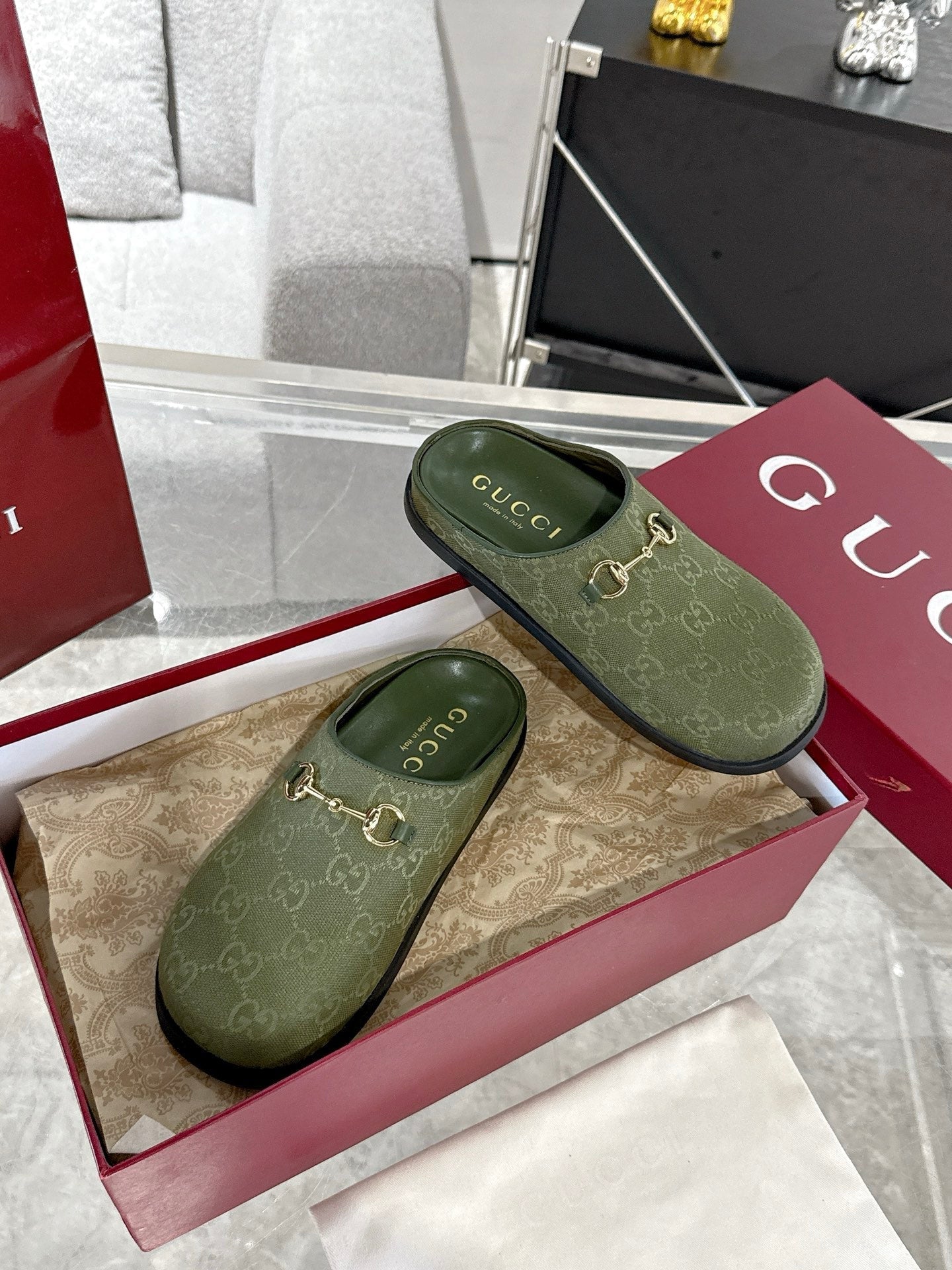 GC 25 Horsebit Mule Green Monogram Canvas