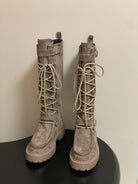 HM lace up boots belt buckle taupe suede