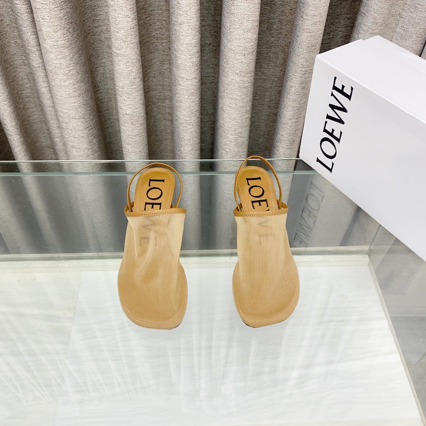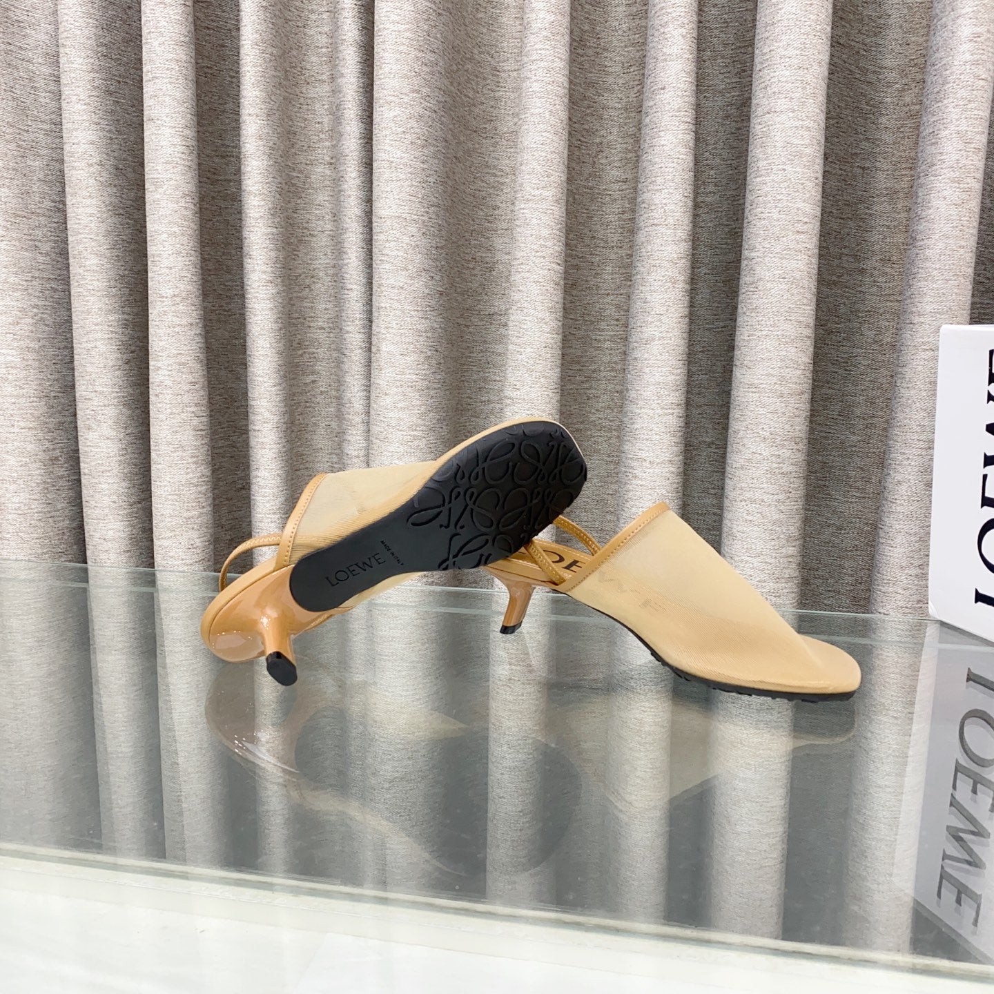 Loewe 25 Petal Slingback Beige Mesh Sheepskin