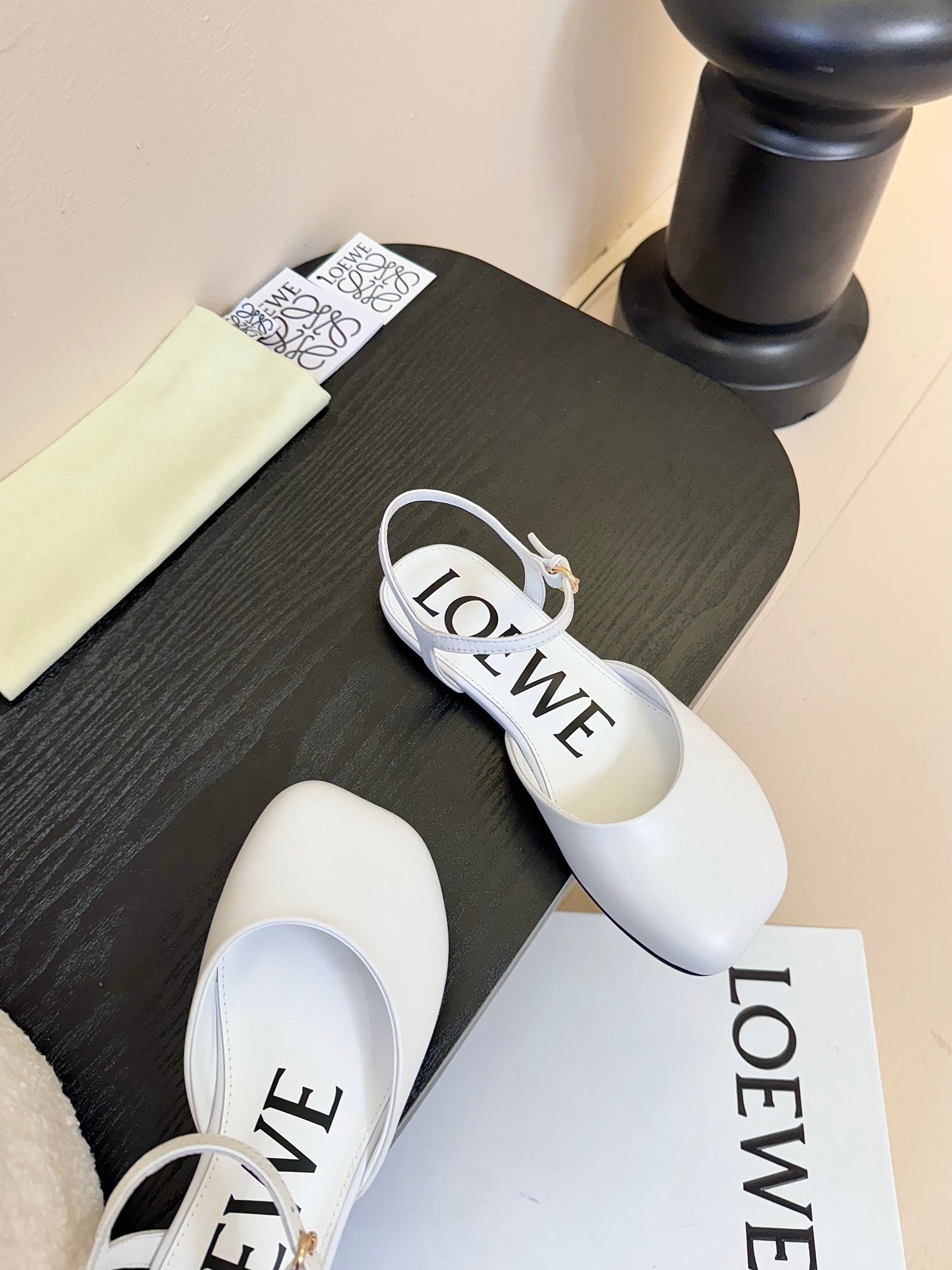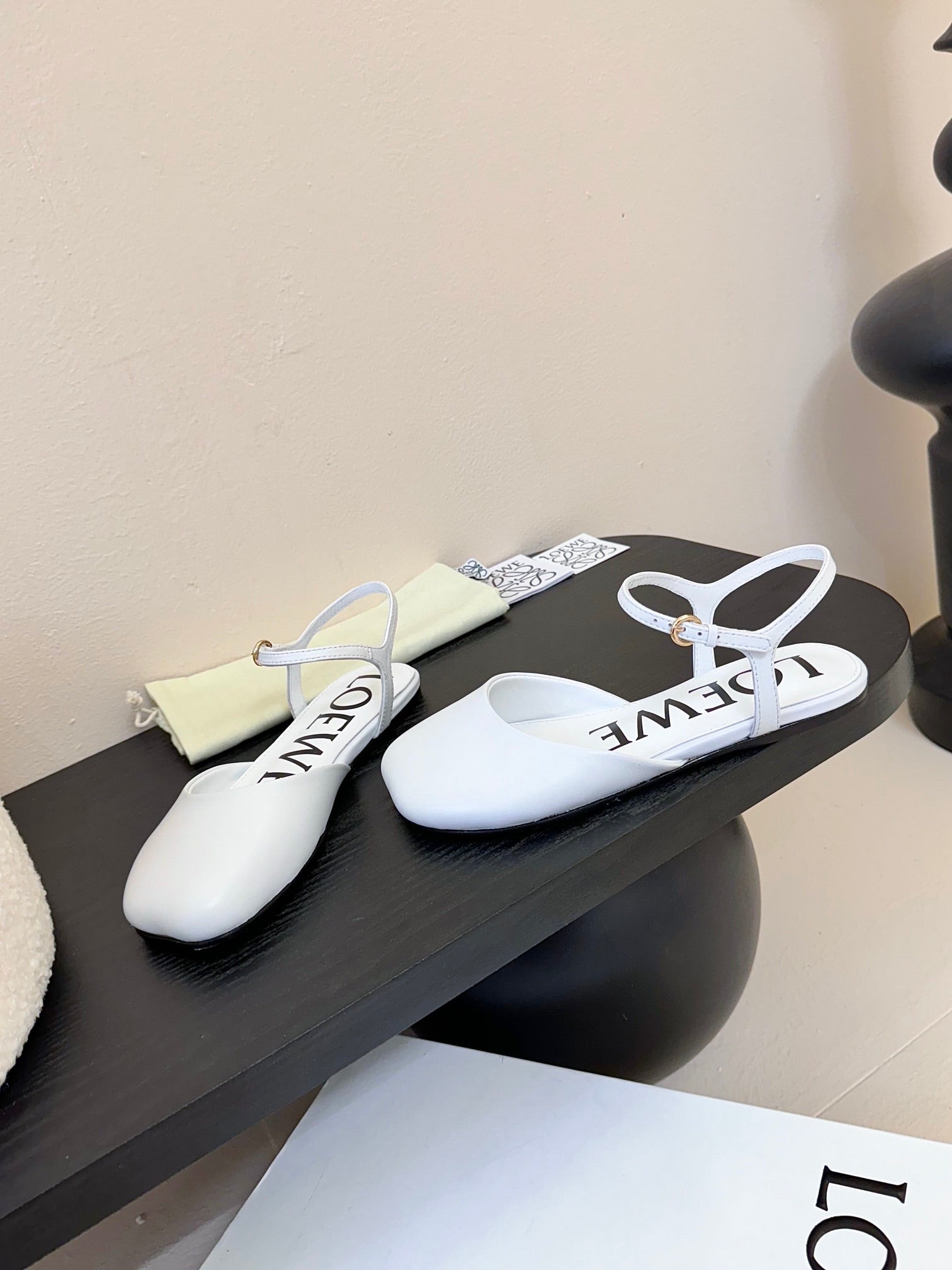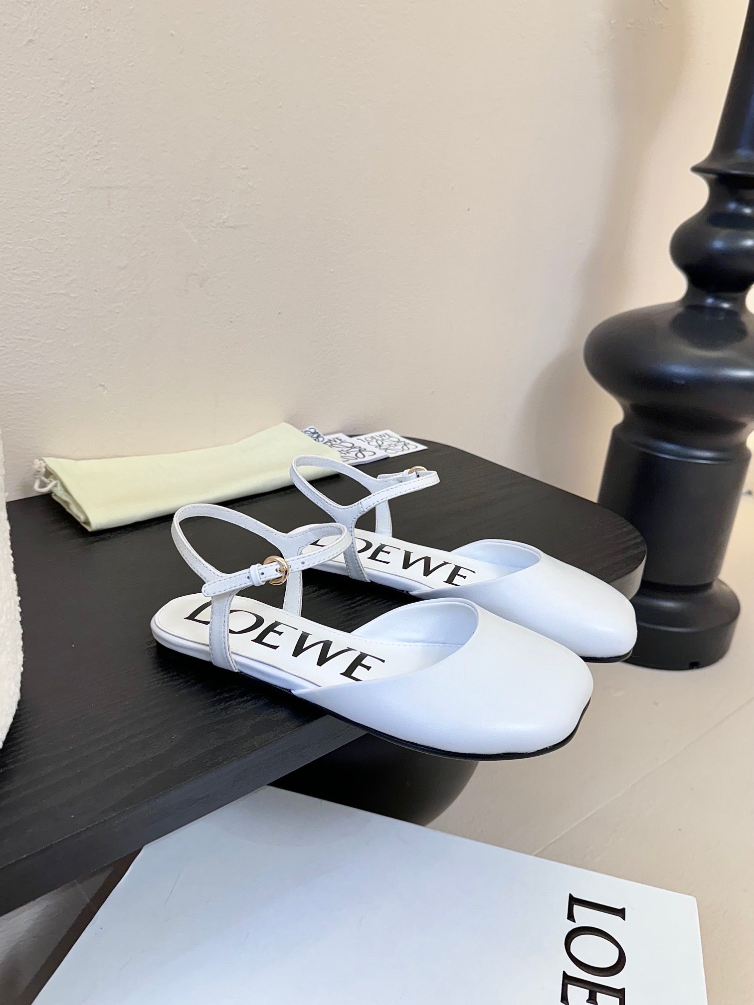 Loewe 25 Toy Ankle Strap Ballet Flat White Calfskin