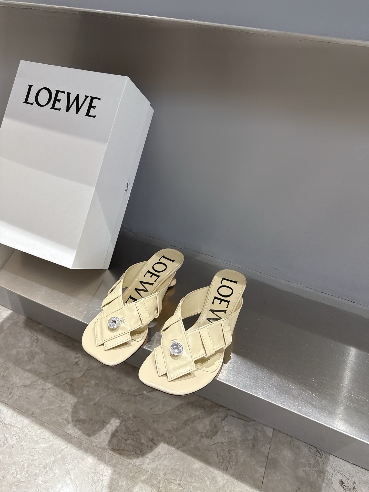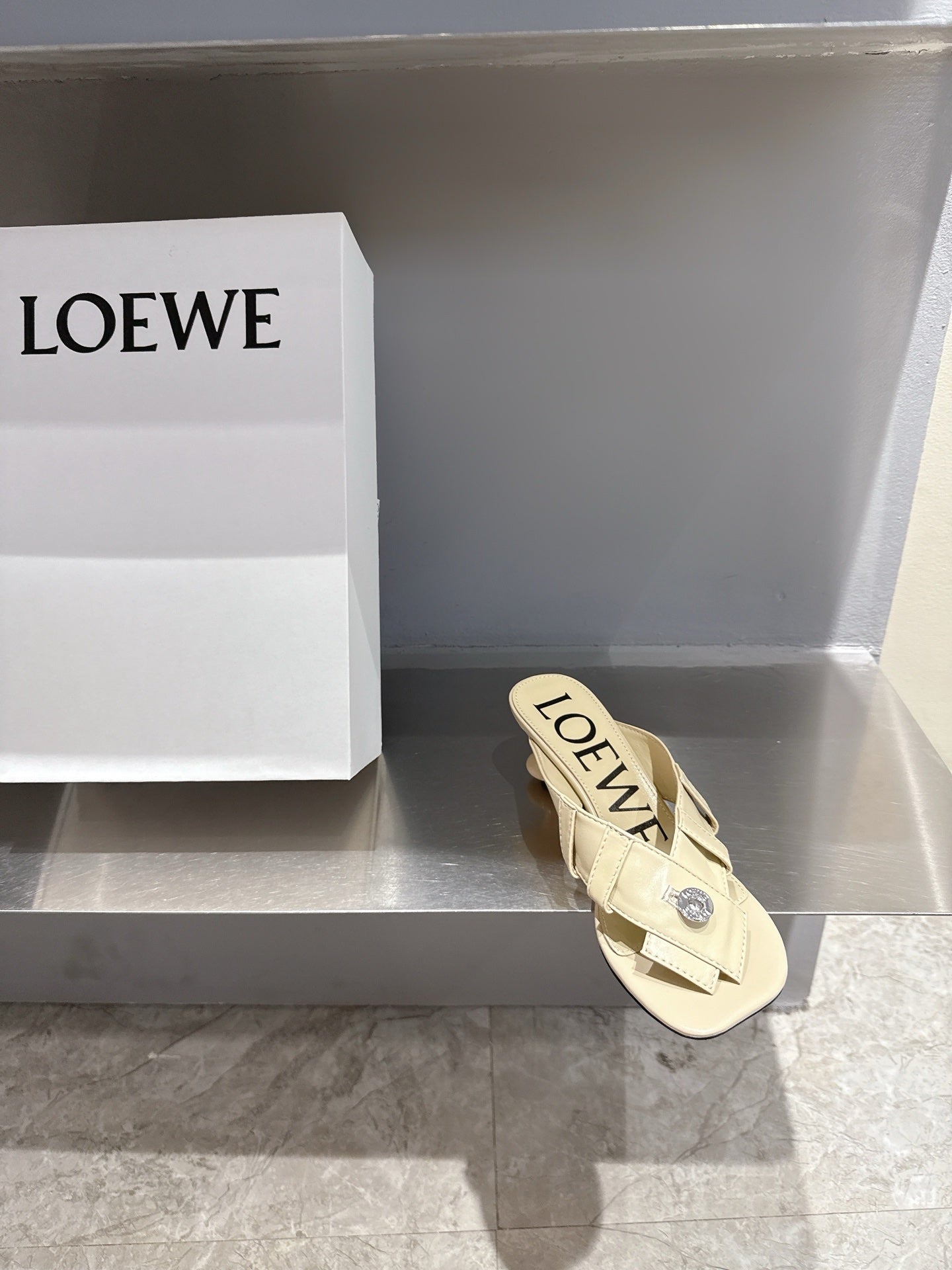 Loewe 25 Toy Panta Toe Thong 5cm Beige Sheepskin