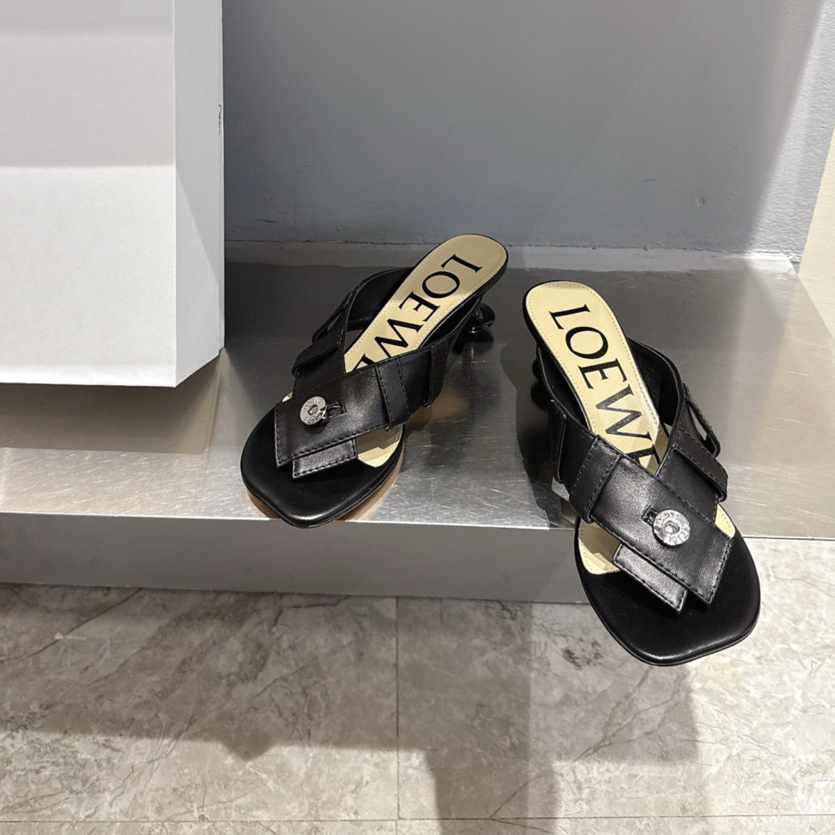 Loewe 25 Toy Panta Toe Thong 5cm Black Sheepskin