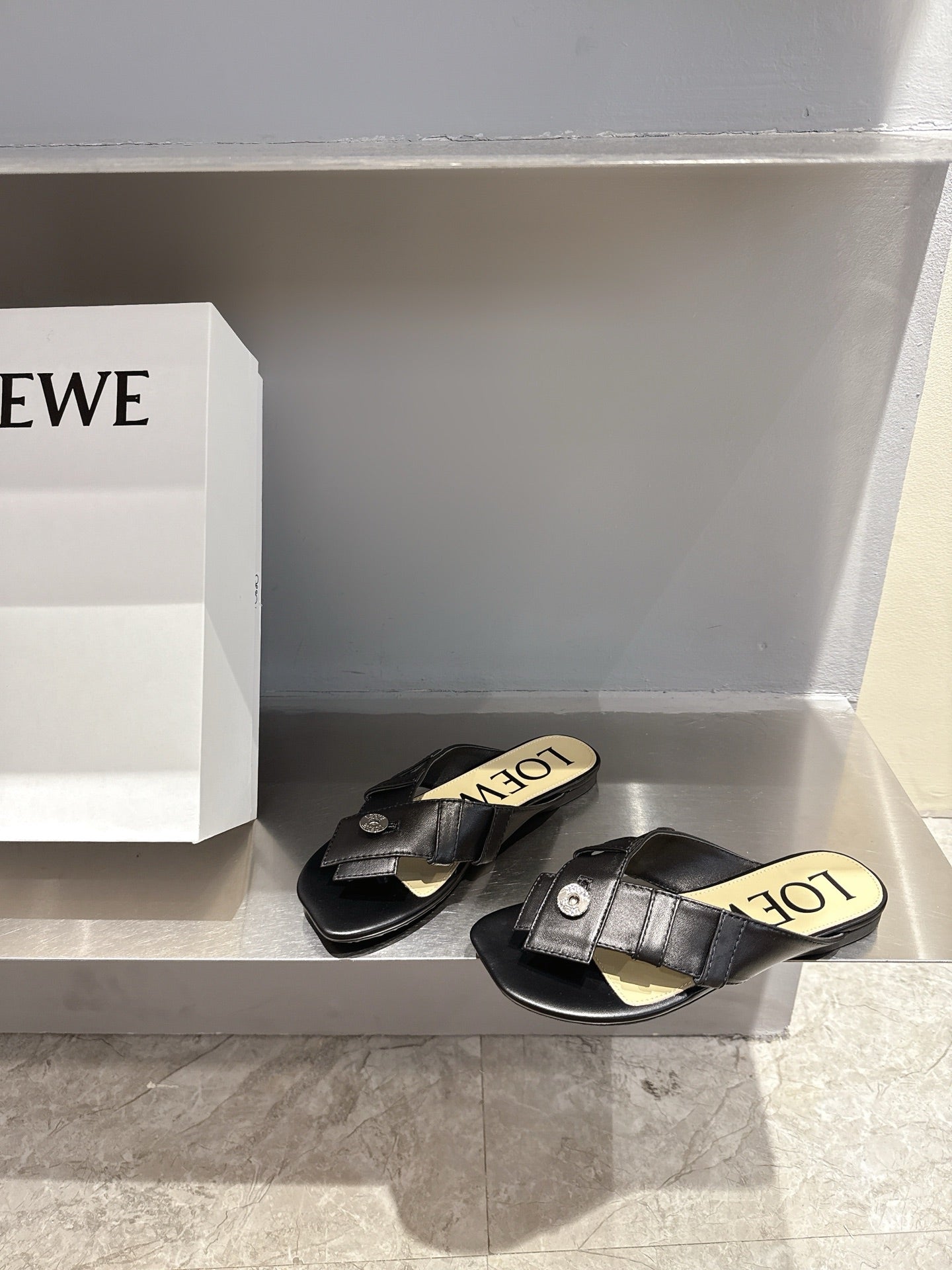 Loewe 25 Toy Panta Toe Thong Black Sheepskin
