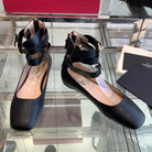 VT 25 Ballerina Ballet Gladiator Flats Black Cowhide 292358