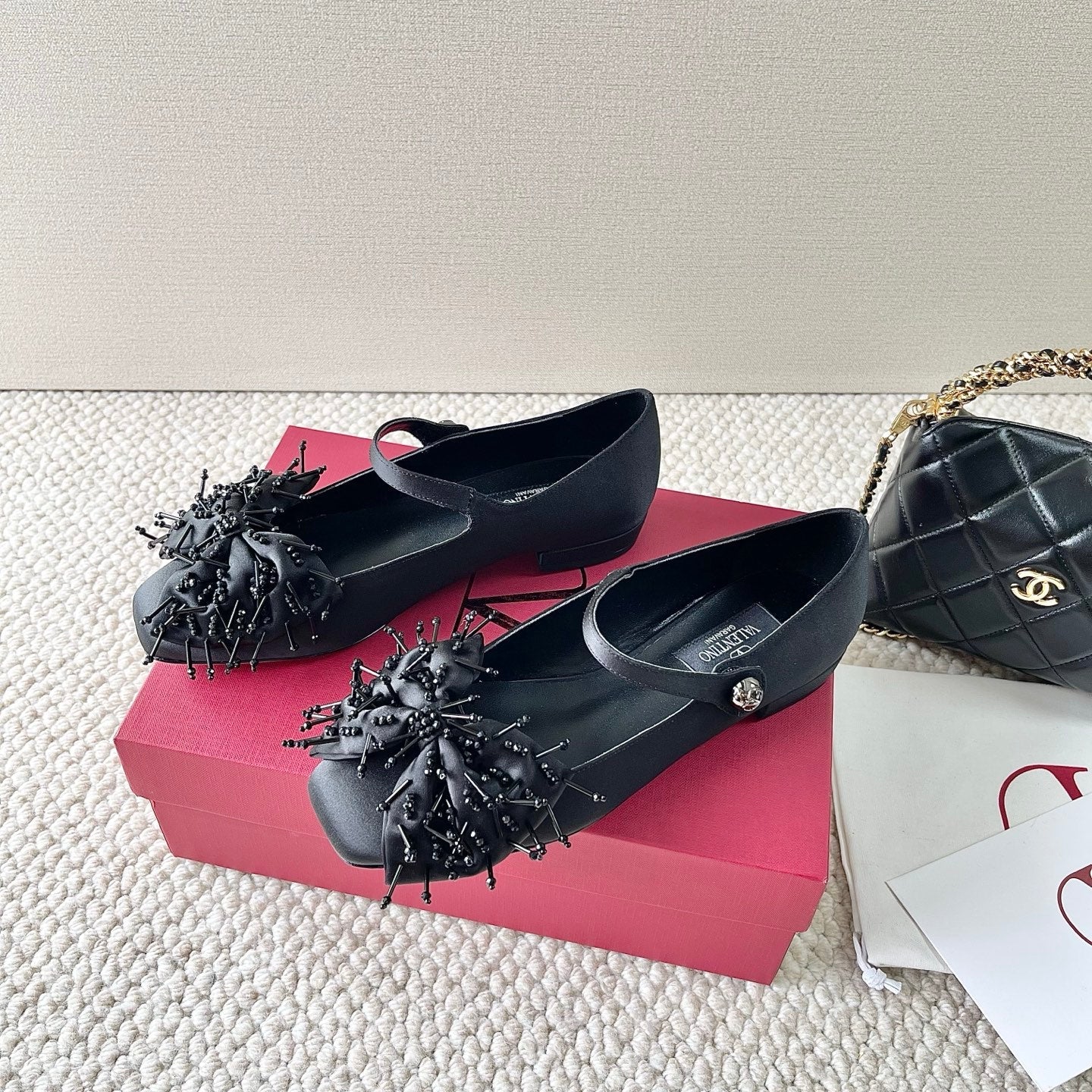 VT 25 Bow Marry Jane Flat Black Silk 345039