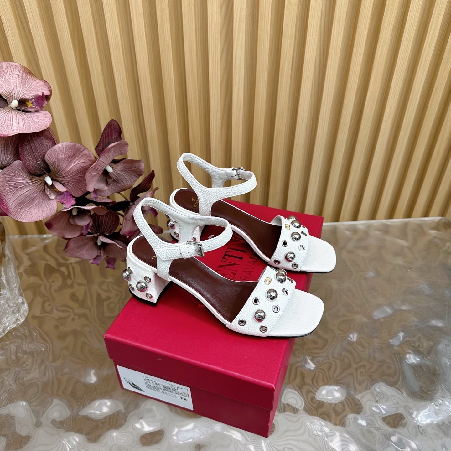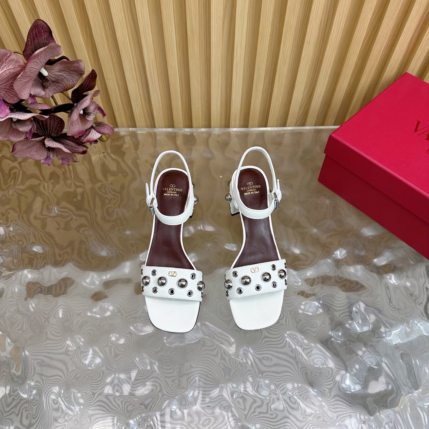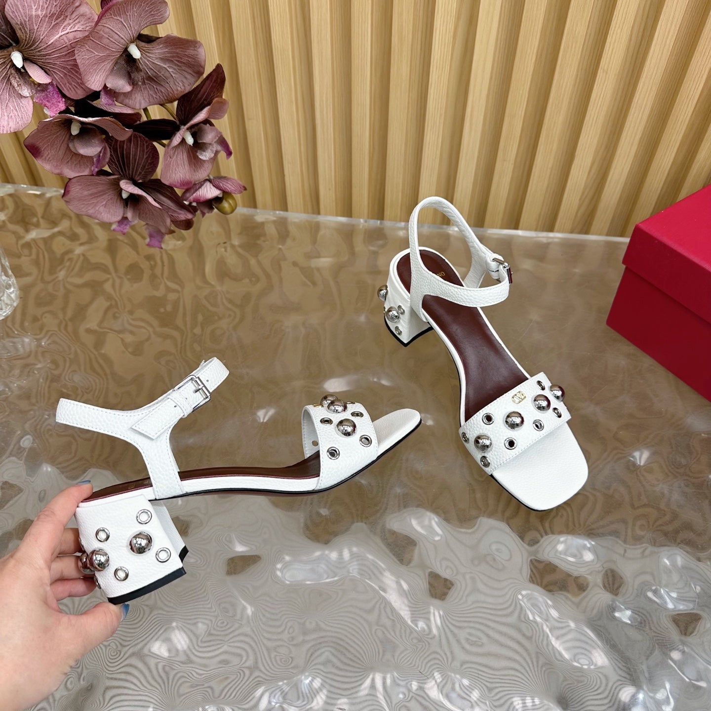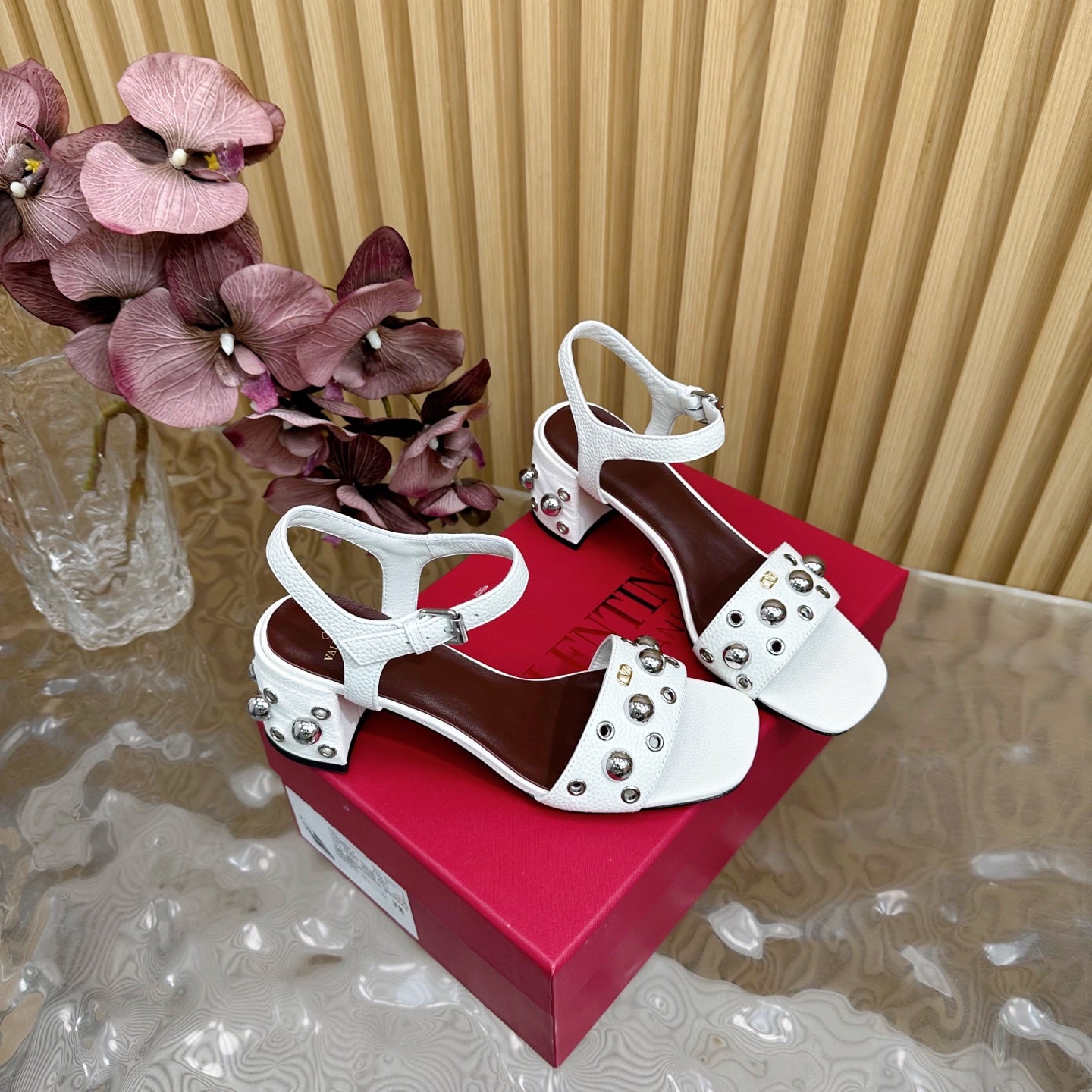 VT 25 Rivet Steel Beads Slingback White Lambskin 325204