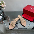 VT 25 Rockstud Flat Sandals Beige PVC Sheepskin