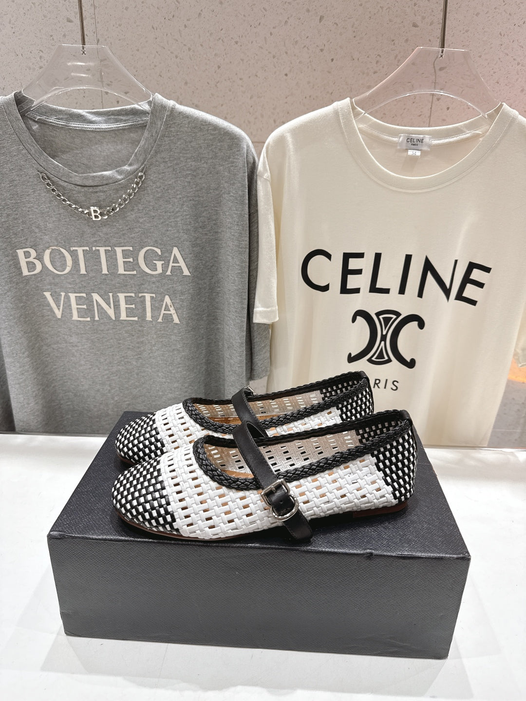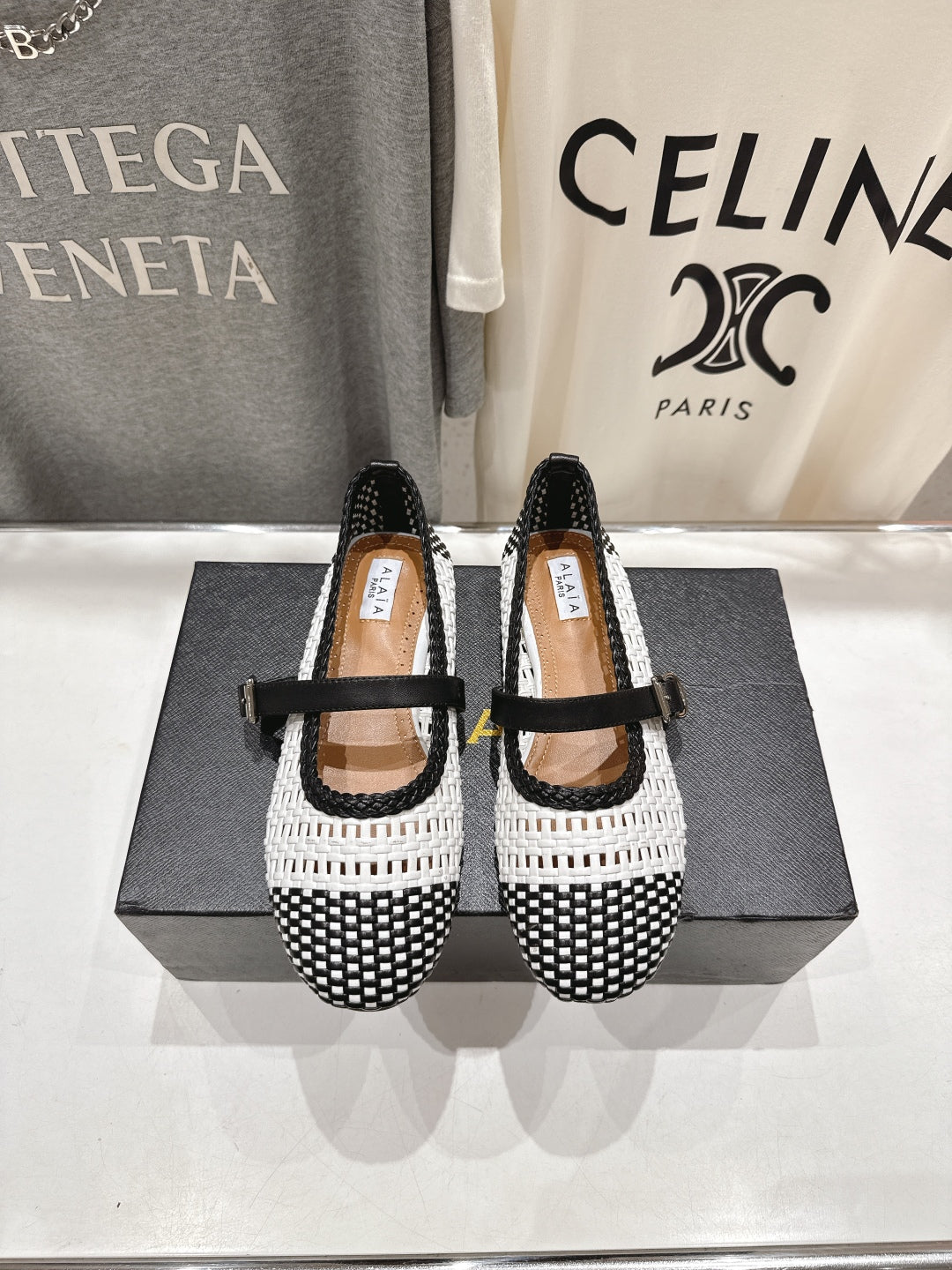 ALAIA MARY JANE FLATS white mix black woven calfskin pattent