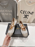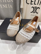 ALAIA MARY JANE FLATS white mix metallic champagne gold woven calfskin pattent