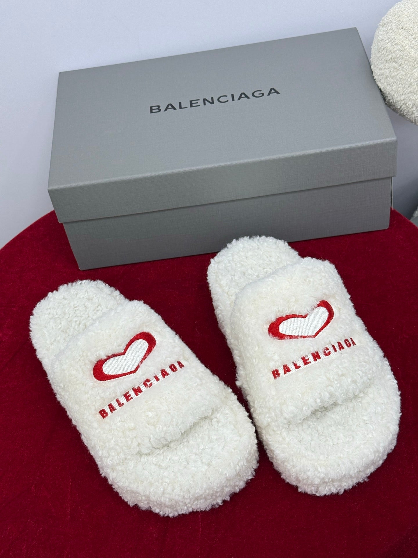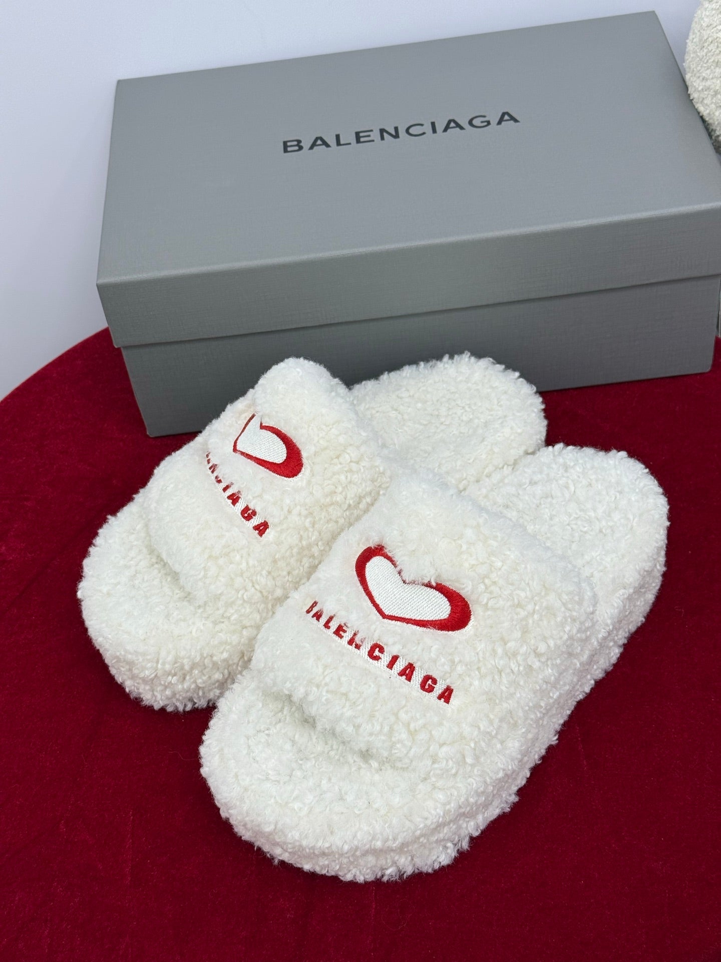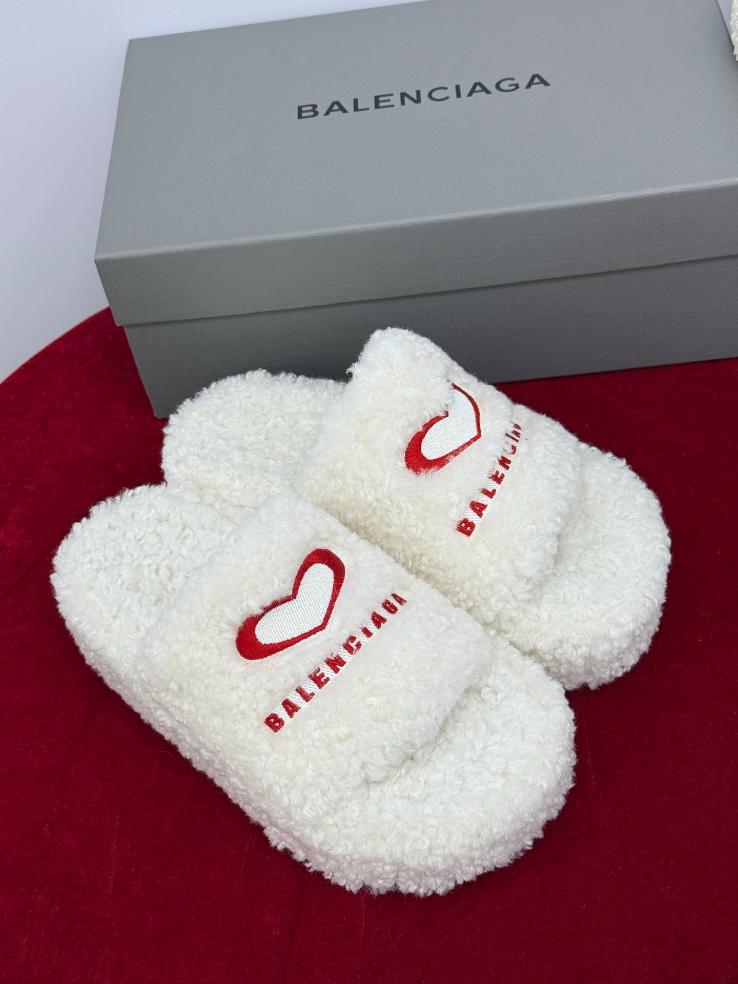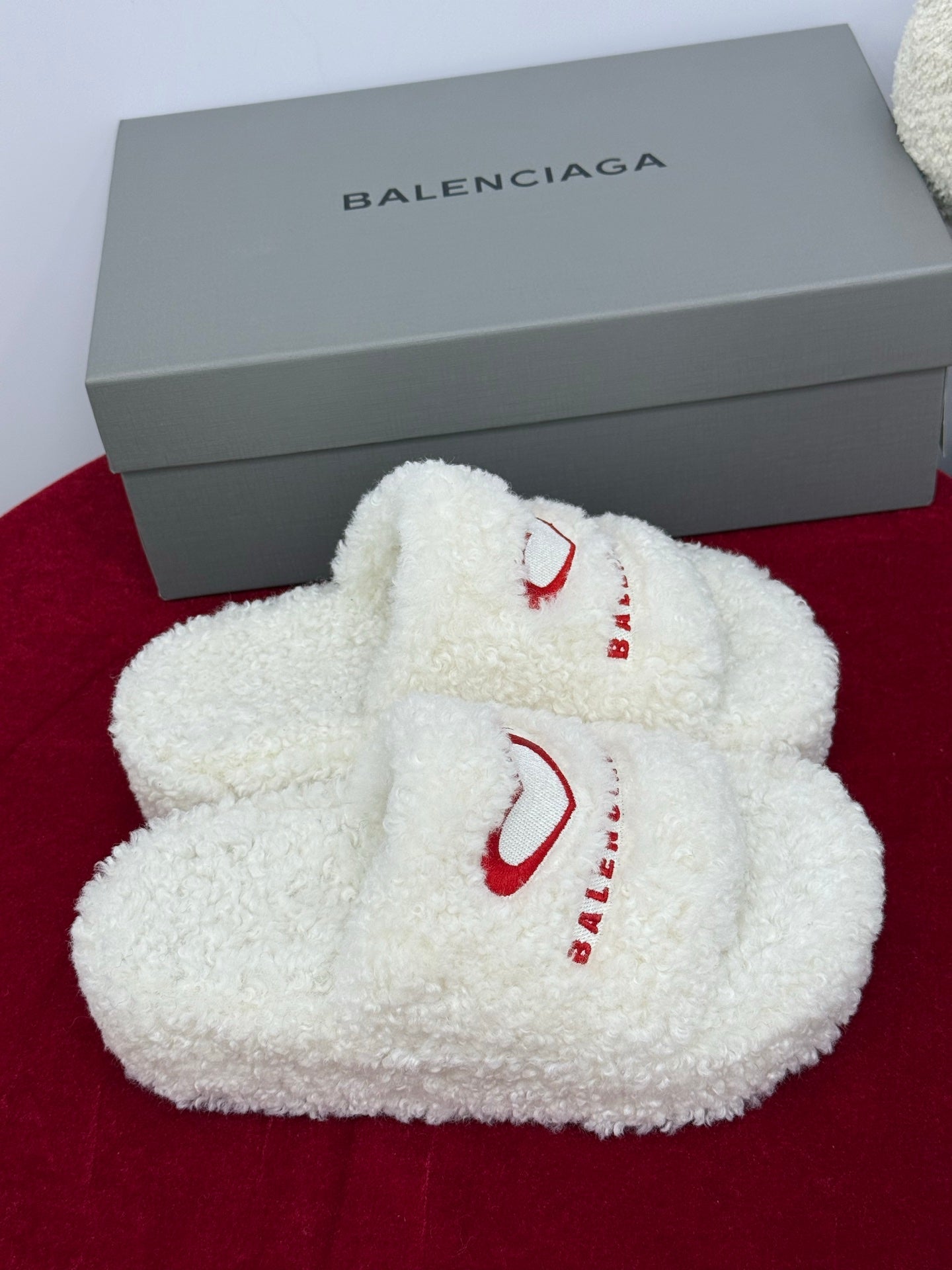 Balenciaga 25s slippers white red wool 467707