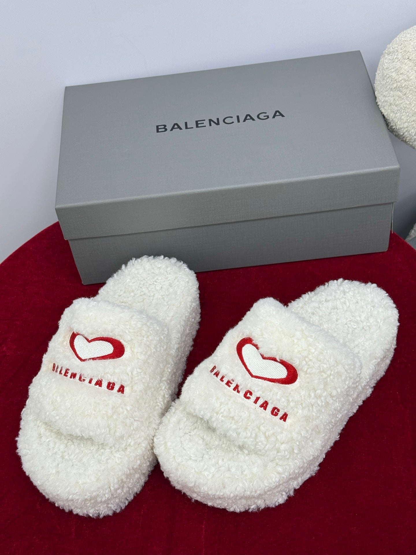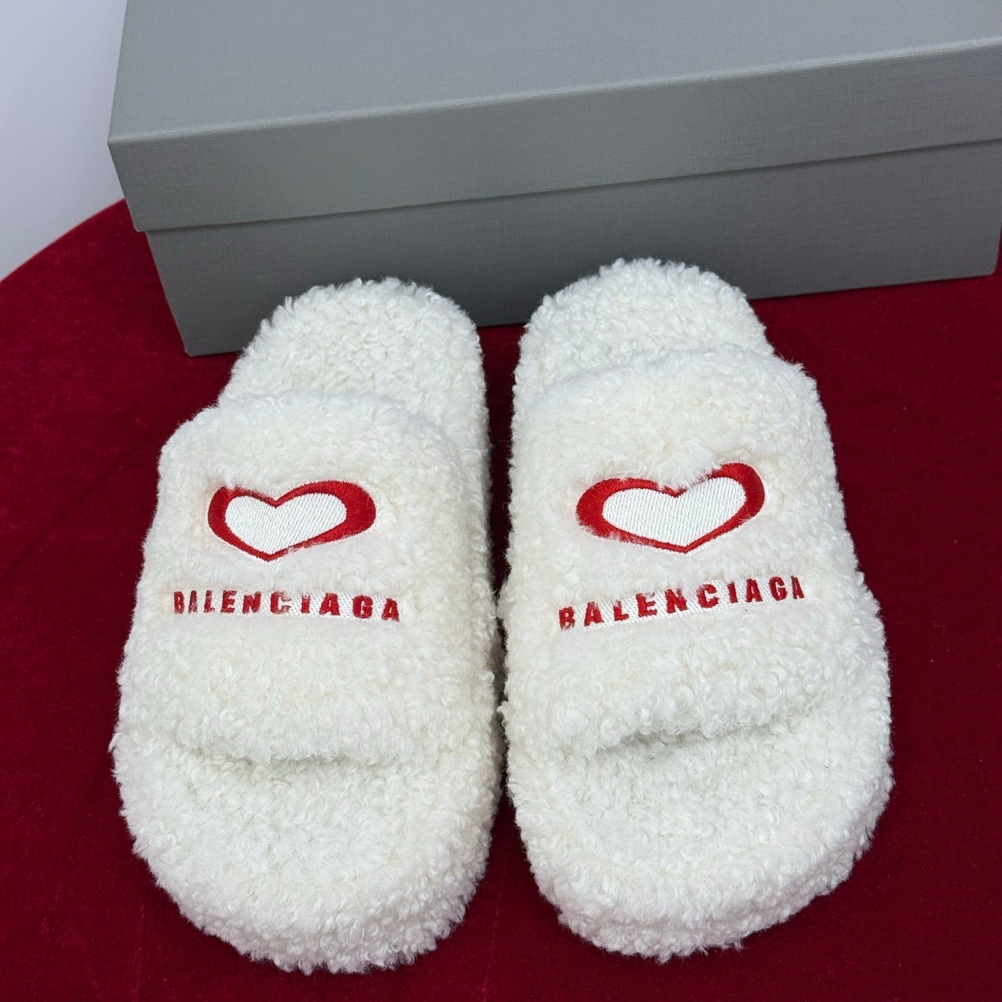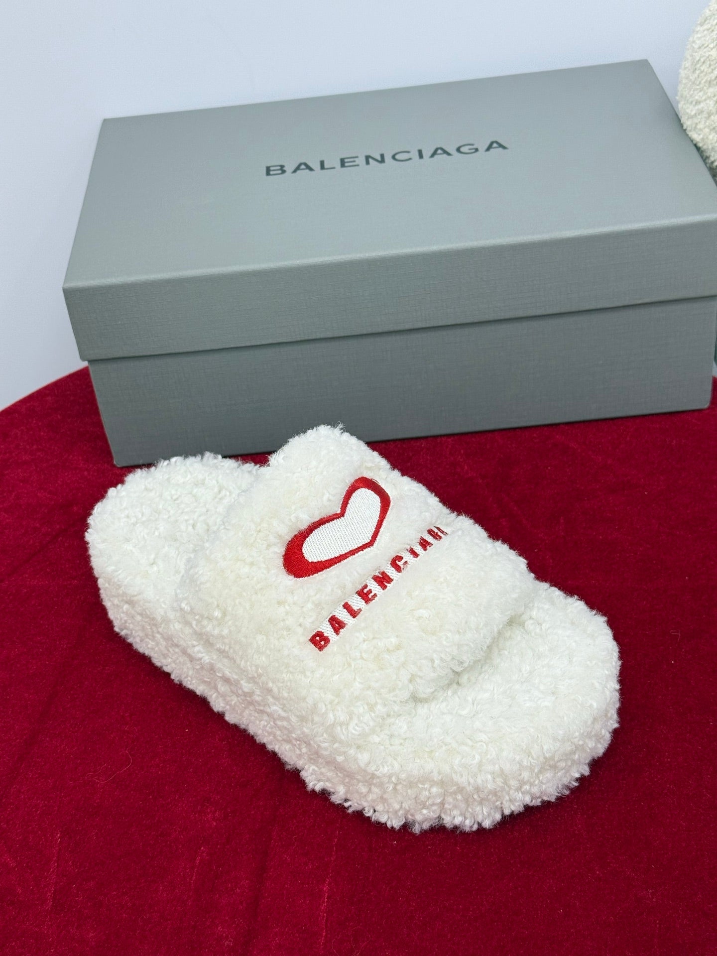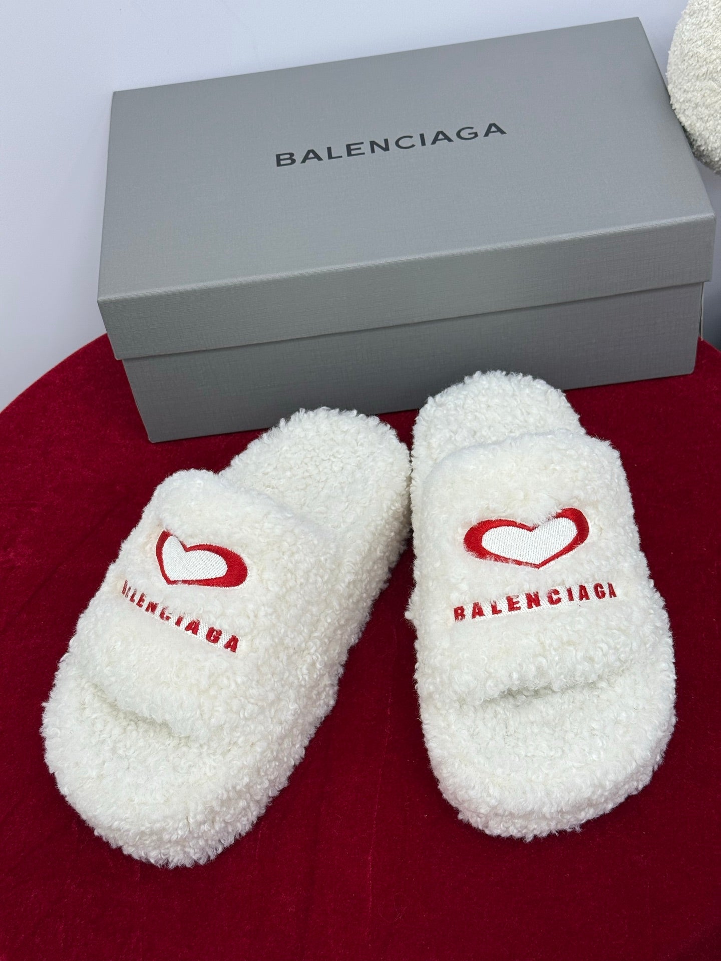 Balenciaga 25s slippers white red wool 467707