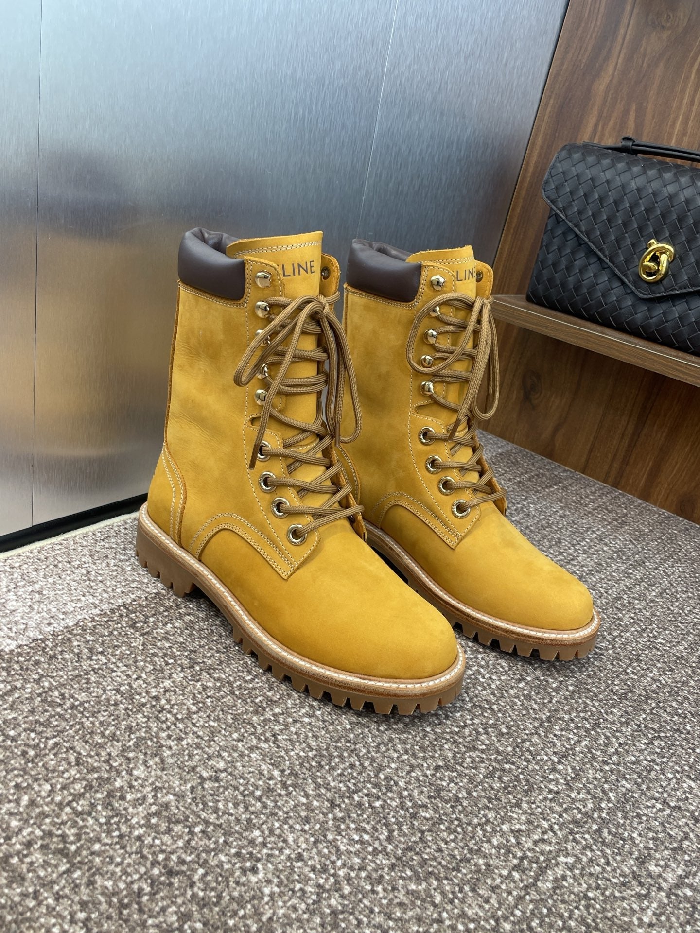 CELINE 25 Ankle Boots Yellow Suede 433390
