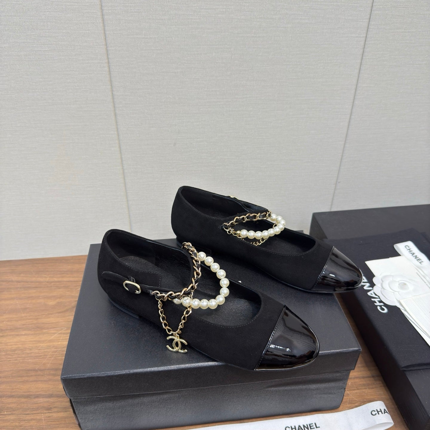 Chanel 25 Mary Jane Ankle Chain Ballet Flat black Suede Cowhide 465597
