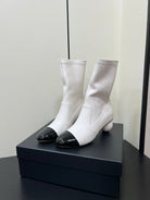 Chanel Double C Giant Pearl Heel Stretch Boots White Sheepskin 441706
