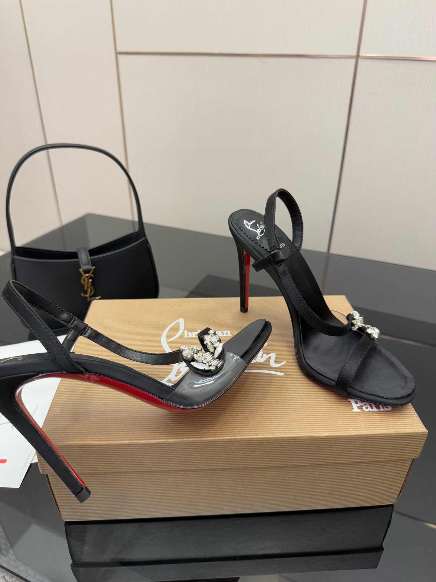 CL Diamond Sandals 10.5cm Black Silk 299879