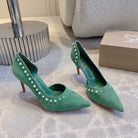 CL Irishell 85 Studded d'Orsay Pumps Green Suede 177127
