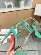 CL So Me 105 mm Strappy Sandal Grass Green Imported Rivets with Sheepskin 251020