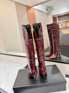 CLASSIC HIGH KNEE BOOTS IN BURGUNDY RED CALFSKIN