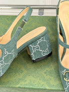 GC Horsebit Slingback Pump Muted Teal Green Denim 412735
