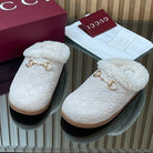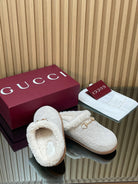 Gucci 2025 Horsebit Embossed Mule Cream Suede And Wool 563038