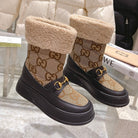 Gucci 2025 Monogram Boot Black Beige Wool Canvas Calfskin 564685