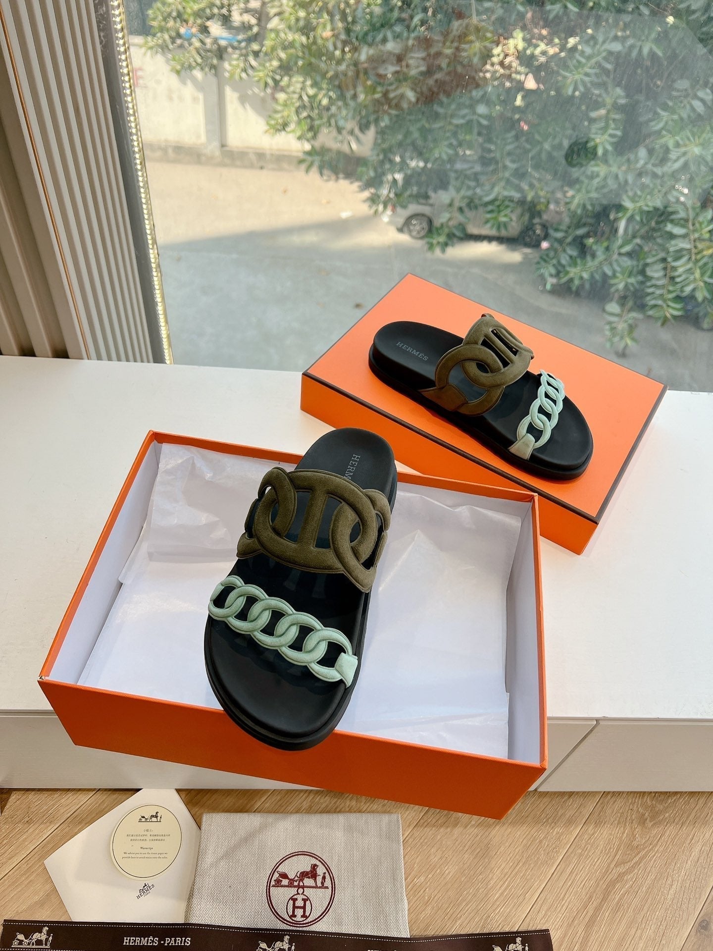 HM 25 Extra Sandal Khaki Tiffany Blue Calfskin