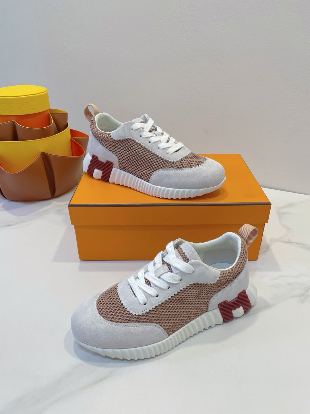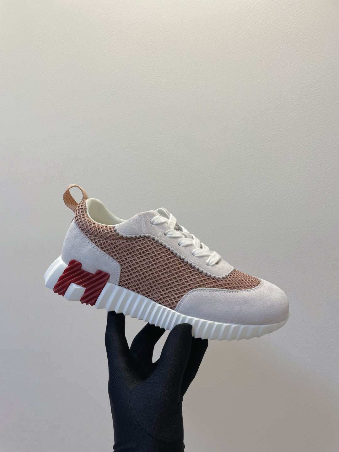 HM Bouncing sneaker Beige Gray mix Velvet Rose Fabric with Suede 212283