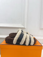 HM Slippers Classic Kelly Sliver Buckle Brown Black Wool