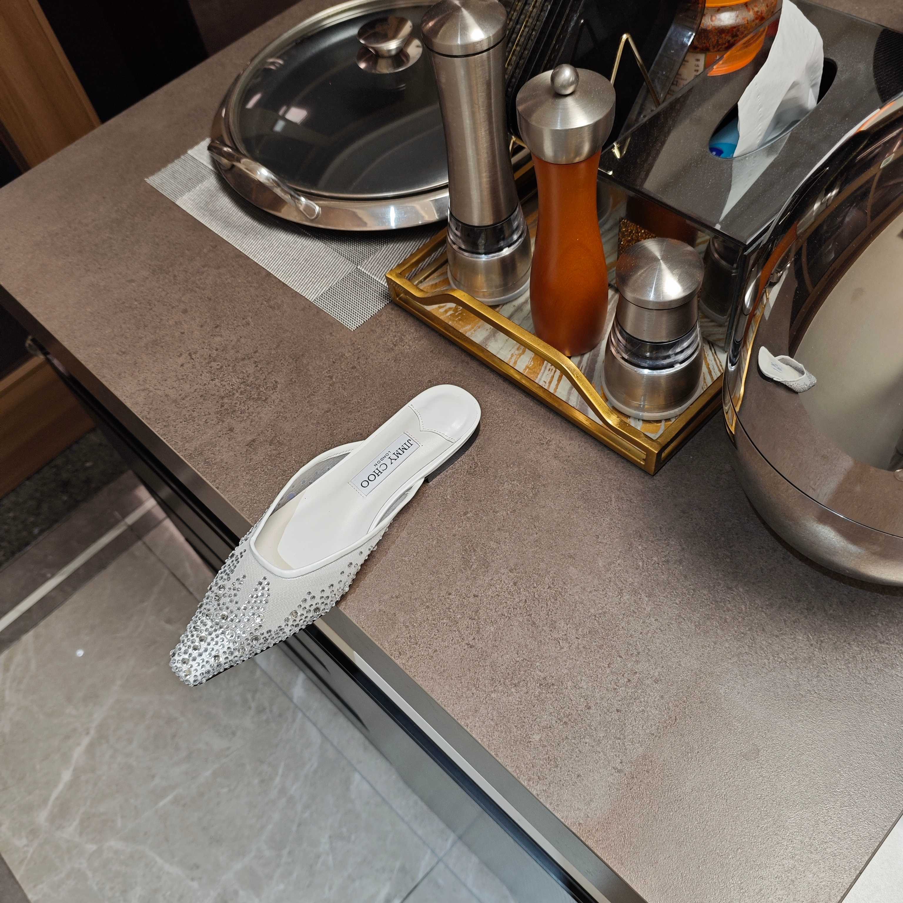 Jimmy 25 Mule Flats White Mesh Gauze 240056
