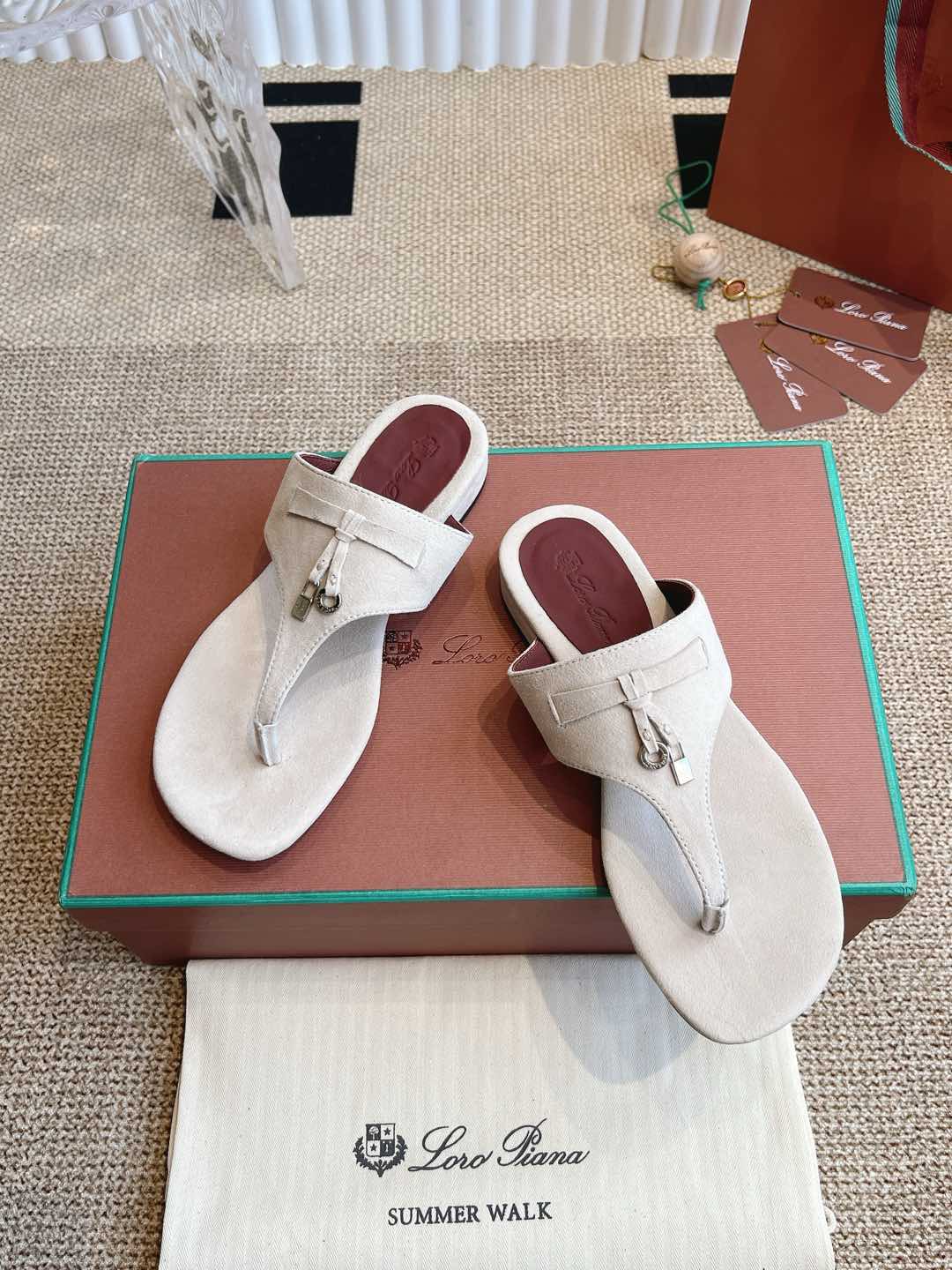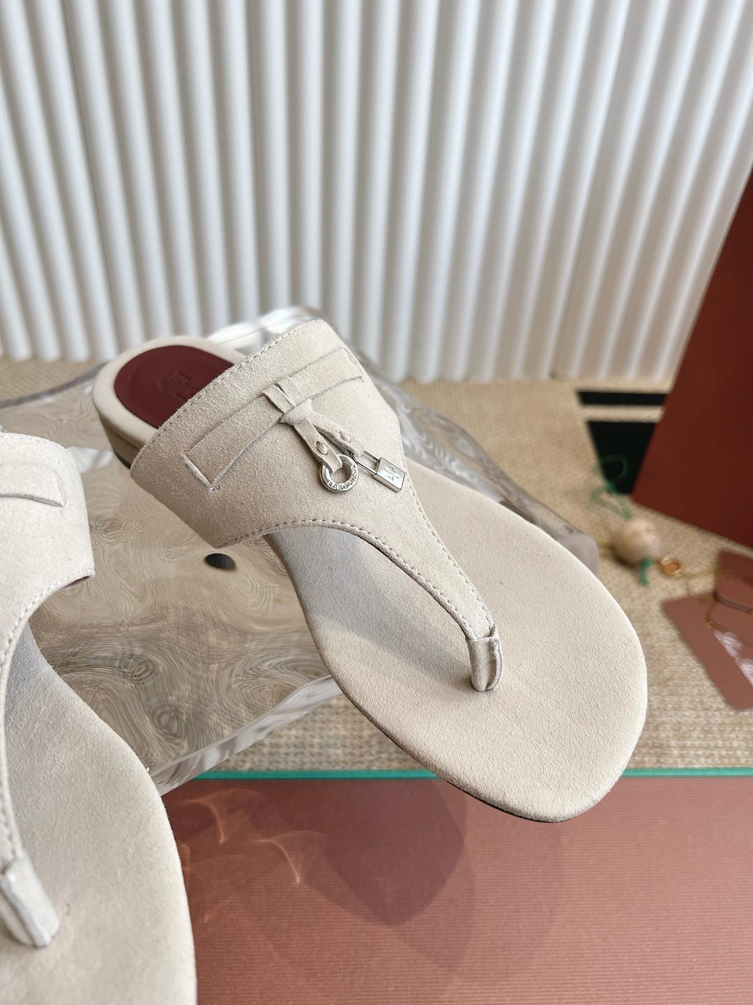 LP 25C Thong Slide Sandal White Suede 208108