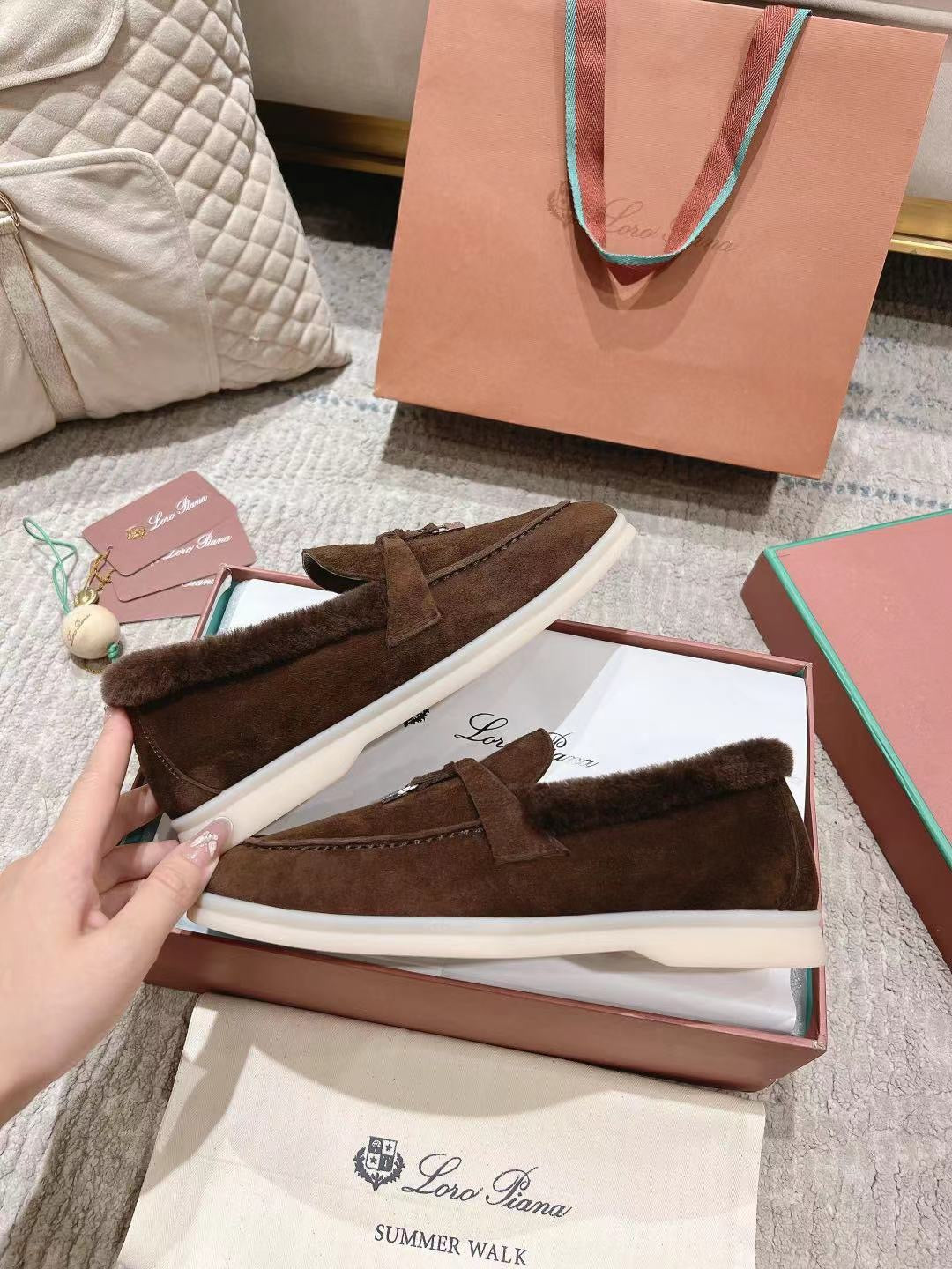 LP Summer Charms Walk Loafers Bottele Brown Suede With Rabbit Fur Lining 206262