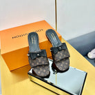 LV 25C LV x TM 6AM Flat Mule Black Bow Mocha Brown with Monogram Multicolore Leather 219951