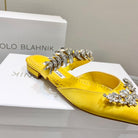 Manolo Flats Mules Crystal Yellow Silk Satin 327472