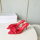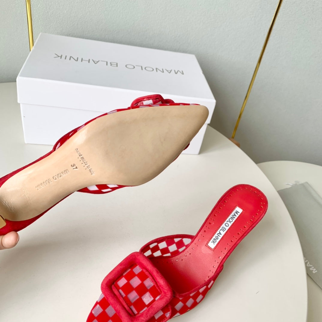 Manolo Mules Latest Checkerboard Red Fabric Leather 528007