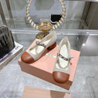 Miu 25C Mary Jane 45MM Beige Cream Mix Brown Fabric 235365