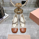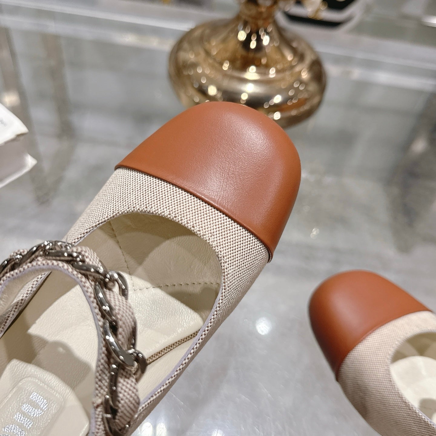 Miu 25C Mary Jane 75MM Beige Cream Mix Brown Fabric 235367