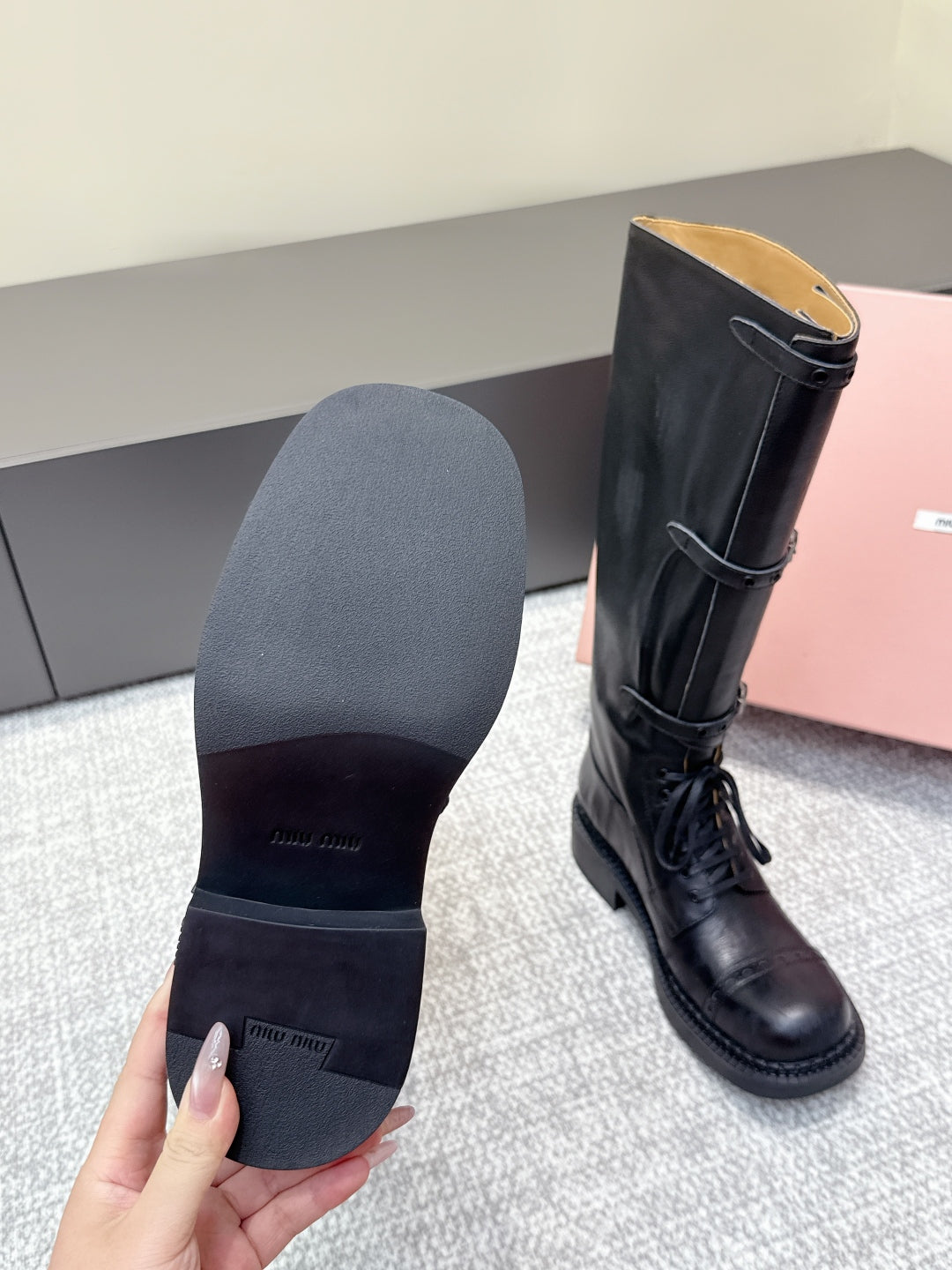 MIU MIU Cowboy High Boots Black Sheepskin 461845
