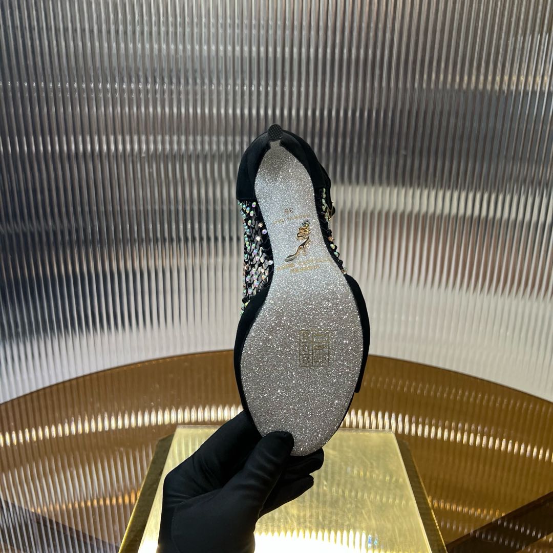 RC 25C High Heel Short Boots Mid-Tube Open-Toe Sandals Black Sheepskin 174961