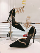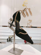 RC 25C Scarpin Black Gold Imported Velvet Swarovski Crystal 339483