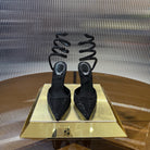 RC 25C Single Sandals Black Sheepskin Rhinestone 339496