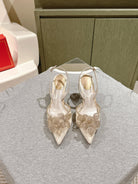 RC 25C Slingback Flower High Heel 7.5cm Beige Silk Rhinestones 268081