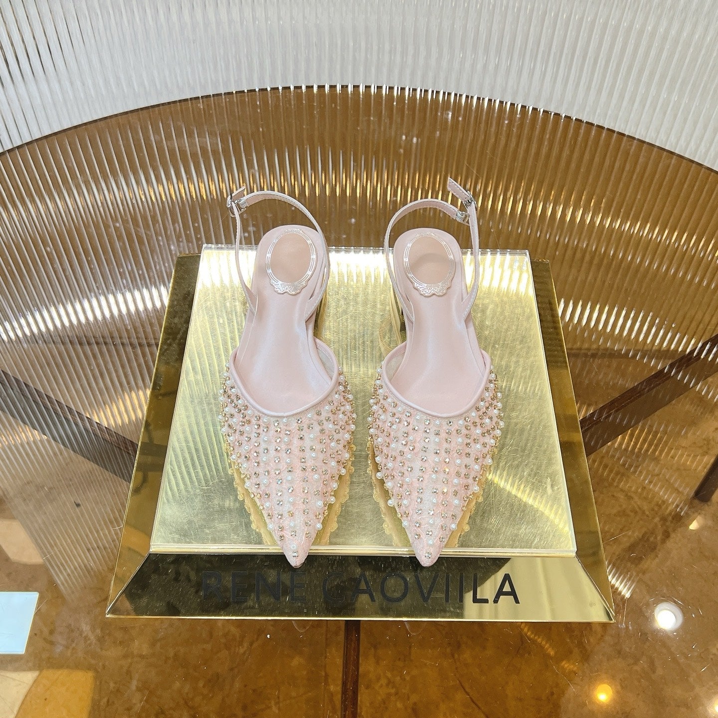 RC Slingback Shoe 1cm Pink Rhinestone Sheepskin 281984