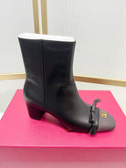 Valentino 2025 Bow Square Toe Zipper Ankle Boot Black Cowhide 549736